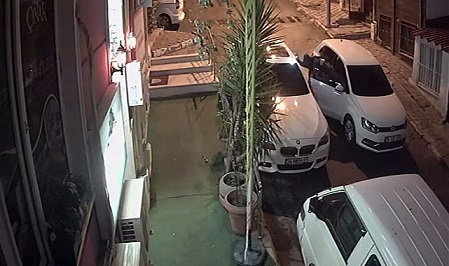 Yüzü maskeli bir kişi ilk önce elindeki fenerle aracın hayalet göstergesi olup olmadığını kontrol etti. Otomobilde hayalet gösterge olduğunu tespit eden şüpheli, geldikleri araca geri bindi. Kısa bir süre sora tekrar araçtan inen şüpheli, elindeki aletle lüks otomobilin camını zorlamaya başladı.
