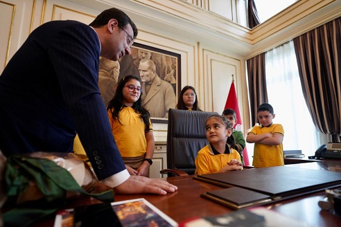 İBB'nin Saraçhane'deki ana yerleşkesindeki makam odasında gerçekleştirilen sembolik devir-teslim töreninde öğrenciler; Emircan Palta, Nisa Uğurlu, Ela Deniz İlker, Emre Ölmez, Ömer Kaan Ciğerci ile okul müdürü Hüseyin Kaya ve görevli öğretmen Ceren Emekçioğlu da hazır bulundu. Öğrenciler ve öğretmenlerle tek tek tanışıp bayramlaşan İmamoğlu, sözü, "yeni Başkan" Palta'ya bıraktı.