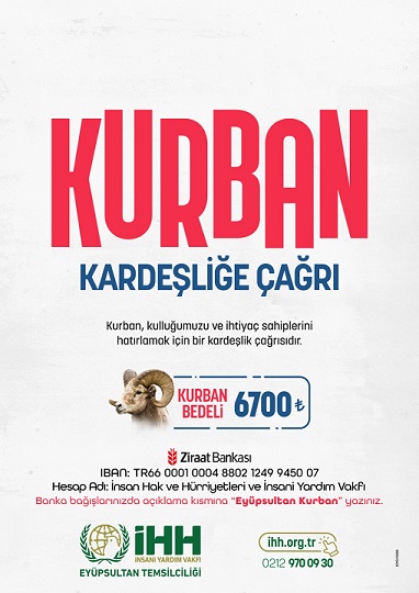 İHH İnsani Yardım Vakfı bu yılki Kurban organizasyonunu “Kurban Kardeşliğe Çağrı” sloganıyla yurt içindeki Kurban çalışmaları ile birlikte 60 ülke ve bölgede gerçekleştirerek ihtiyaç sahiplerine ulaşmayı hedefliyor.
