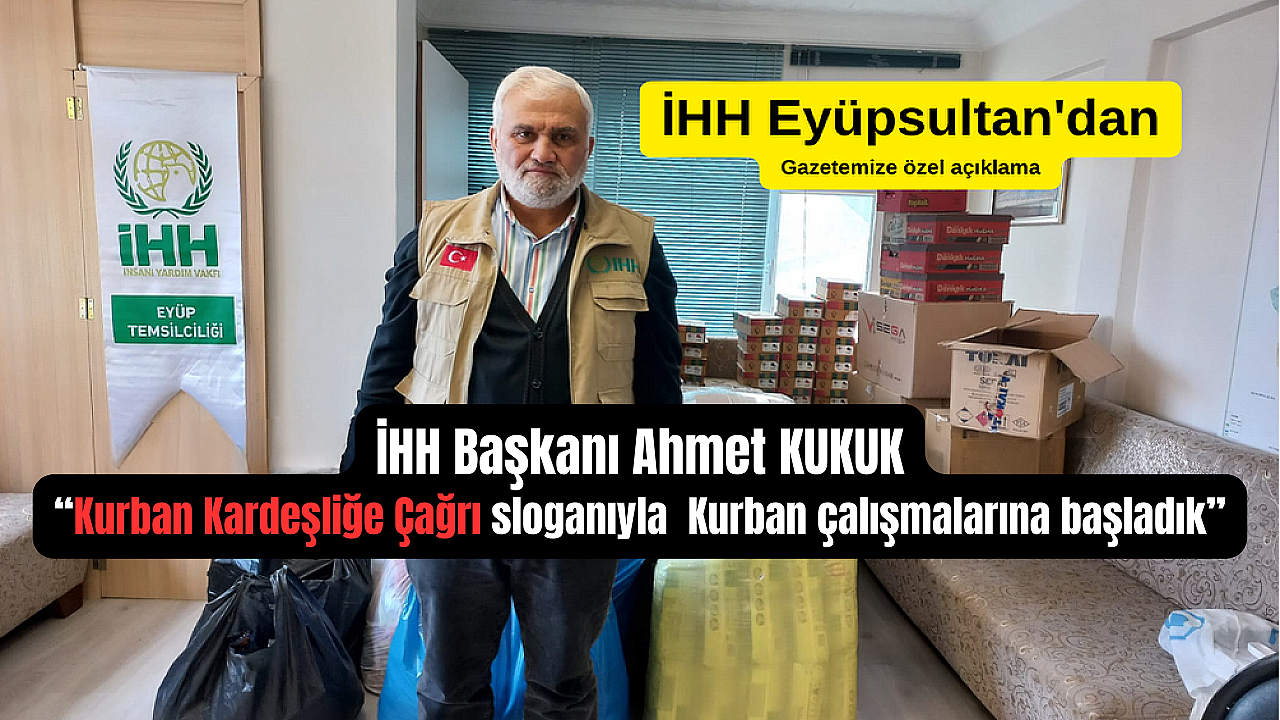 İHH İnsani Yardım Vakfı Eyüpsultan Temsilcisi Ahmet Kukuk, vakıf çalışmaları hakkında bilgi verdi. Başkan Kukuk, yaptığı açıklamada, ‘’İHH İnsani Yardım Vakfı Eyüpsultan Temsilciliği olarak ihtiyaç sahiplerine el uzatmaya devam ediyoruz. Geçtiğimiz Ramazan Bayramı’nda düzenlediğimiz birçok kampanya ile birçok hayırsever ile ihtiyaç sahipleri arasında köprü vazifesi kurmuştuk. Şimdi de yaklaşan Kurban Bayramı öncesinde de çalışmalarımıza hız verdik.”