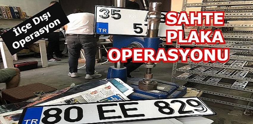 Sahte plaka imalatı yapan bir iş yerine düzenlenen operasyonda iş yeri sahibi ile sahte plaka almaya gelen 4 müşteri gözaltına alındı. Çok sayıda sahte plaka ele geçirildi.