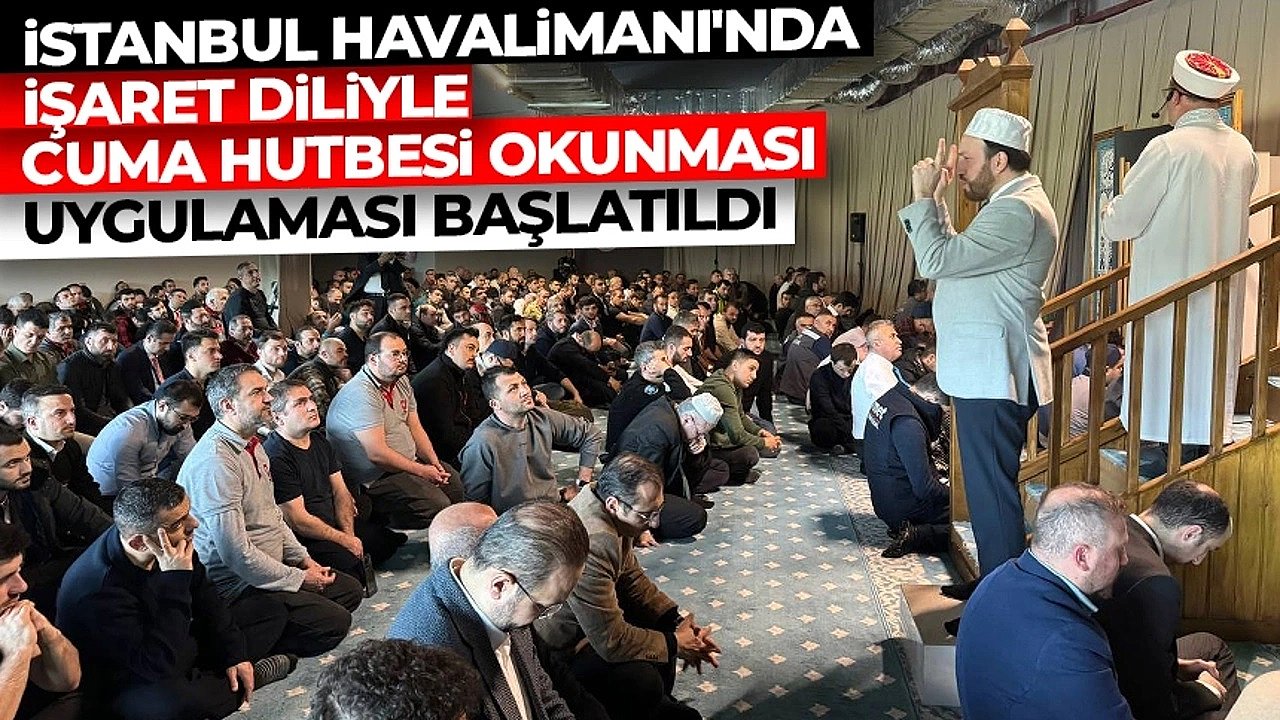 İstanbul Havalimanı'nda İşitme engellilerin de cuma hutbesini anlayabilmesi "İşaret Dili" ile vatandaşlara anlatıldı. Hutbenin "İşaret Dili" ile anlatılması en çok işitme engelli vatandaşları mutlu etti. İmamın okuduğu cuma hutbesi İstanbul Eyüpsultan Müftülüğüne bağlı Hicret Kuran Kursu'nda görevli Kuran Kerim öğreticisi Bekir Baş tarafından engelliler için minberin yanından işaret diliyle aktarıldı.