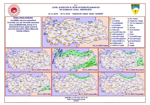Hafta sonu yurdun kuzey ve güneydoğu kesimlerinde sağanak ve karla karışık yağmur etkili olacak. Hava sıcaklıkları pazar gününden itibaren kuzey ve iç kesimlerde mevsim normallerinin altına düşecek.
