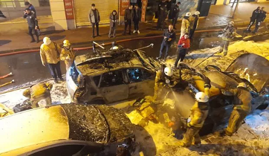 Olay yerine gelen polis ekipleri çevrede güvenlik önlemi alırken itfaiye ekipleri ise yanan araçları söndürmek için çalışma başlattı.