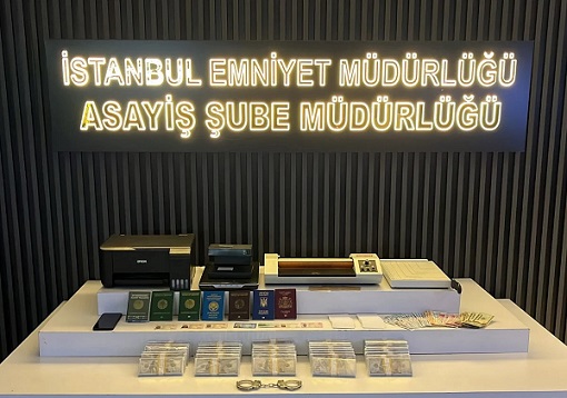 Ayrıca evde yapılan aramada yabancı kimlik kartları, farklı kişiler adına düzenlenmiş pasaportlar, yabancı kişiler adına düzenlenmiş ikamet izin belgeleri, sahte kimlik yapımında kullanılan belgeler, sahte kimlik yapımında kullanılan filigran ve laminasyon makineleri ele geçirildi.