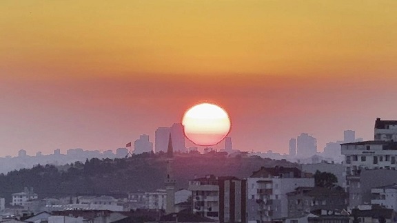 İstanbul’da kızıla bürünen güneşin battığı anlar eşsiz Manzara oluşturdu. Ortaya çıkan muhteşem manzara görenleri kendine hayran bıraktı. İstanbul manzarasıyla birleşen gün batımı, adeta görsel şölen oluşturdu.