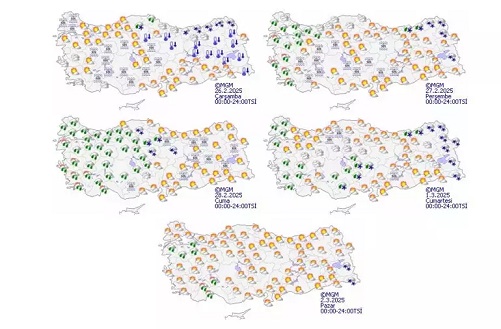 Meteoroloji Genel Müdürlüğü tarafından yapılan tahminlere göre: Ülkemiz genelinin parçalı ve çok bulutlu, Doğu Karadeniz kıyıları ve Doğu Anadolu'nun kuzeydoğu kesimleri ile Sivas, Denizli ve Burdur ile Kastamonu'nun kıyı kesimlerinin karla karışık yağmur ve kar yağışlı; Sinop kıyılarının yağmur ve karla karışık yağmurlu; Antalya ve İzmir'in batı kesimleri ile Çanakkale çevrelerinin yağmur ve sağanak yağışlı geçeceği tahmin ediliyor. Yağışların Rize ve Artvin çevrelerinde yer yer kuvvetli olması bekleniyor.