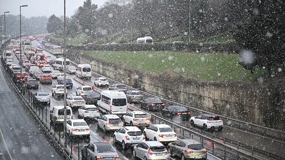Anadolu Yakası'nda, Kadıköy-Kartal arasında D-100 kara yolunda kar yağışı nedeniyle trafik yoğunluğu gözlemleniyor. Özellikle ters istikamette Kartal ve Bostancı mevkilerinde zaman zaman yoğunluk oluştu.