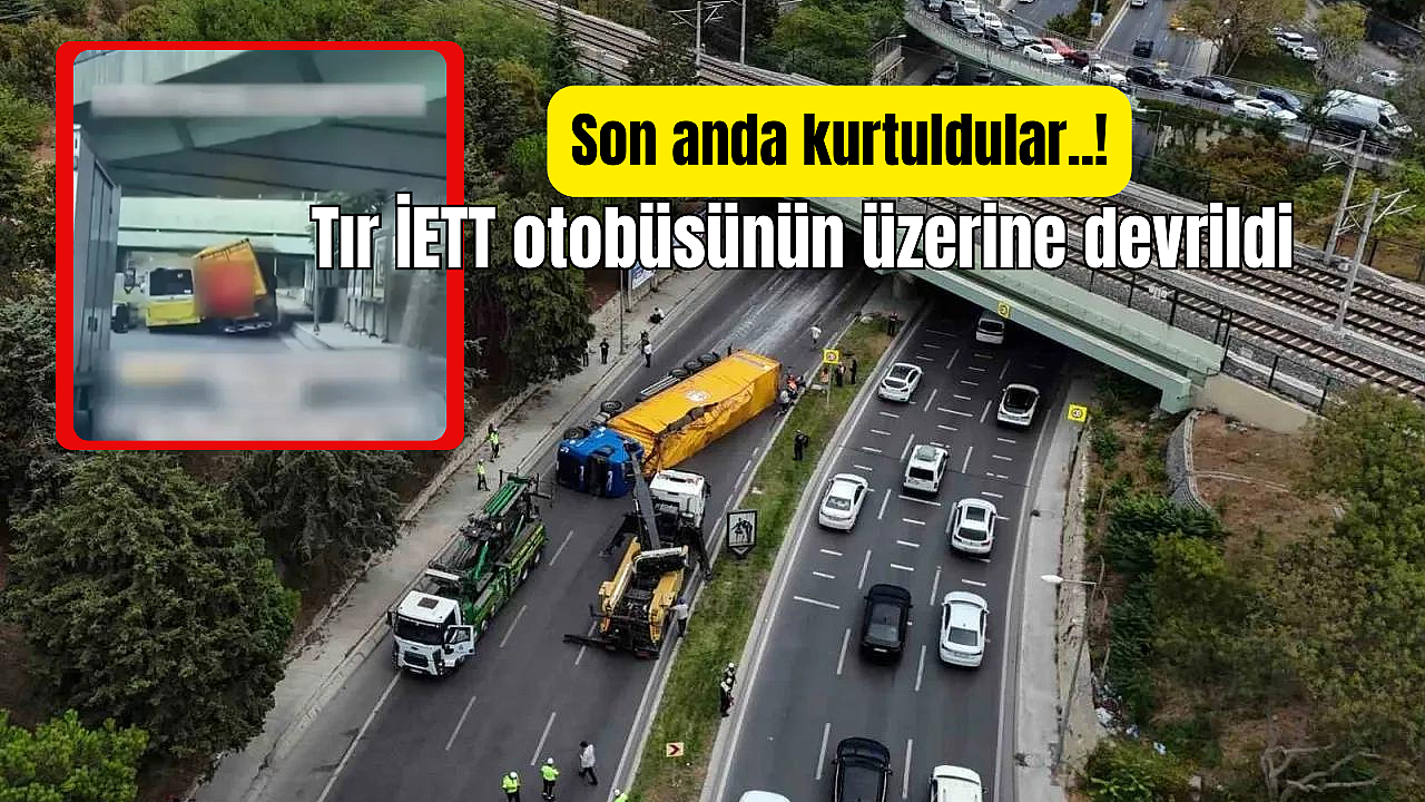 İstanbul’da kaza: TIR İETT otobüsünün üzerine devrildi!