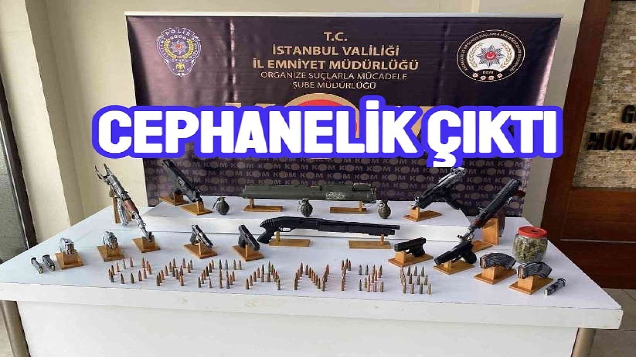 Operasyon anları ve yatağın üzerine serilmiş halde bulunan silahlar polis kameralarına yansıdı. Yakalanan suç unsurları İstanbul Emniyet Müdürlüğü'nde sergilendi.