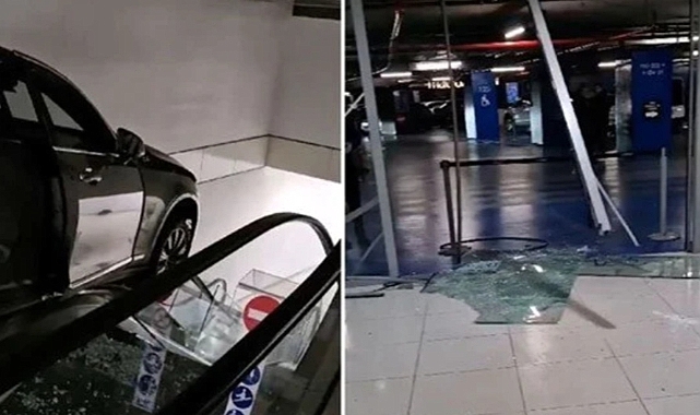 İstanbul’un Şişli'de İ.G.'nin kullandığı otomobil, sürücüsünün kontrolünü kaybetmesi üzerine AVM'nin cam kapısını kırıp içeri daldı. Yürüyen merdivenlere giren otomobil burada asılı kaldı. Kazada biri çocuk 3 kişi yaralandı.