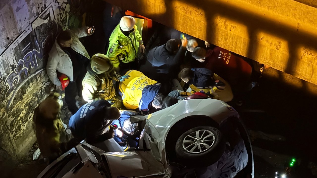 İstanbul'da yağış nedeniyle kayganlaşan yolda sürücüsünün direksiyon hakimiyetini kaybettiği otomobil viyadükten düştü. Otomobilde sıkışarak yaralanan sürücü itfaiye ekipleri tarafından kurtarıldı.