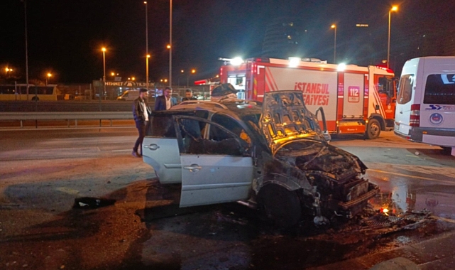 İstanbul'da otomobil yangını! Yanarak ölmekten son anda kurtuldu