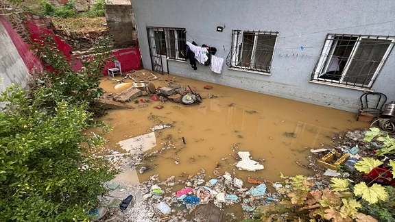 Eyüpsultan'da kısa süreli etkili olan sağanak sonrası Akşemsettin Mahallesi Gürcan Sokak'ta inşaat nedeniyle kazılan alanda biriken su, yan binanın duvarını yıkarak bahçeye doldu. Bahçeden de binanın bodrum katındaki daireye giren su nedeniyle itfaiye ekiplerine haber verildi.