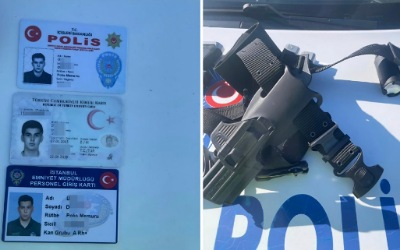 Beşiktaş İlçe Emniyet Müdürlüğüne bağlı Devriye Ekipleri Amirliğine polisler 15 Temmuz Şehitler Köprüsünde uygulama noktasında şüphelendikleri Almanya plakalı aracı durdurdu. Sürücüsü Ü.D. (19), sahte polis kimliğini ve silahını gösterdi.