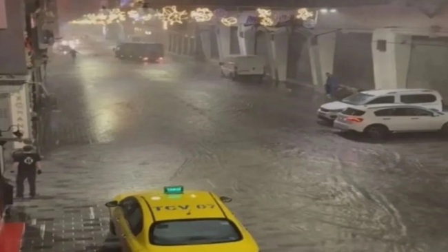 Beyoğlu’nda ani yağış sürpriziyle hazırlıksız yakalanan vatandaşlar açık mağazalara sığınmak zorunda kaldı. Sağanak yağışın etkisiyle Taksim'deki cadde ve sokaklar su altında kalarak adeta bir nehre dönüşürken, İstiklal Caddesi de göle döndü.