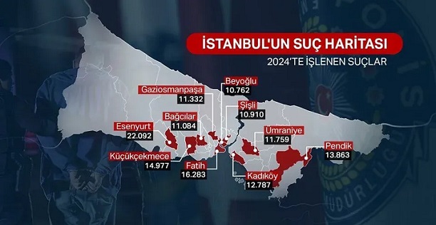 Bu ilçeler, İstanbul’un farklı bölgelerine yayılmış olmakla birlikte suç oranlarının genellikle kalabalık nüfus ve ekonomik faktörlerle bağlantılı olduğu görülüyor.