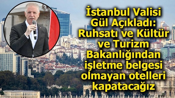 İstanbul Valisi Davut Gül, "Pazartesi günü itibarıyla ruhsatsız ya da Kültür ve Turizm Bakanlığı'ndan basit konaklama belgesi olmayan konaklama yerlerinin tamamını kapatmış olacağız" dedi.