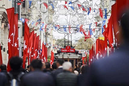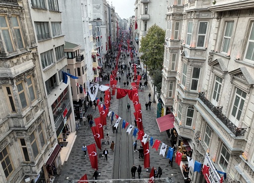İstanbul, İstiklal Caddesi'nde 6 kişinin hayatını kaybettiği, 81 kişinin de yaralandığı bombalı saldırının ardından İstiklal Caddesi ve patlamanın olduğu bölge Türk Bayraklarıyla donatıldı.
