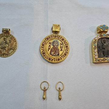 Operasyonda 400 bin dolara paranın yanı sıra satmaya çalıştıkları, Altın Çerçeveli İkona, altın sait Georgia işlemeli madalyon, altın madalyon, Roma dönemine ait altın küpe, ele geçirildi.