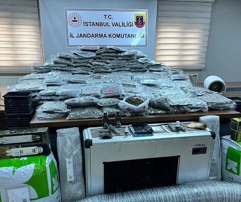 Jandarma ekipleri havalandırma ve ışıklandırma sistemi kurularak uyuşturucu madde yetiştirmek üzere adeta bir seraya dönüştürülen villada ve diğer adreslerde yaptıkları aramalarda; 145 kilo Esrar, 200 kök kenevir, 3 Hassas terazi, 3 havalandırma kolektörü, 1 havalandırma motoru, uyuşturucu gelirlerinden elde ettiği değerlendirilen çok miktarda para ile uyuşturucu madde yetiştirilmesinde ve imalatında kullanılan malzemeler ele geçirildi.