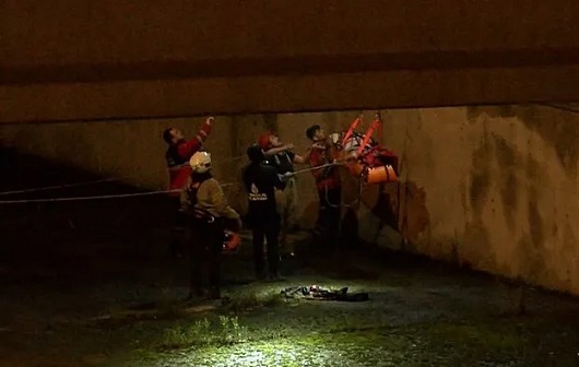 Olay yerine gelen ekipler dereye düşen kamyon şoförünü kurtarmak için çalışmas başlattı. SAK ekiplerinin çalışmasıyla kurtarılarak sağlık ekiplerine teslim edilen hafriyat kamyonu şoförü olay yerinde yapılan ilk müdahalenin ardından hastaneye kaldırıldı. Hafif ticari araç içinde bulunan sürücü ile bir kişi de yaralı olarak ambulans ile hastaneye kaldırılırken çevredekiler kurtarma çalışmalarını cep telefonu kameralarıyla kaydetti.