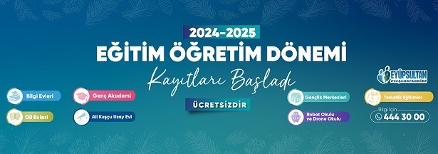Bilgi Evleri, Gençlik Merkezleri, Dil Evleri, Genç Akademi, Ali Kuşçu Uzay Evi, Robot Okulu ve Drone Okulu, Tematik Eğitimler için https://basvuru.eyupsultan.bel.tr/ linkinden kayıt yaptırıp, 444 30 00 nolu telefondan bilgi alınabiliyor.