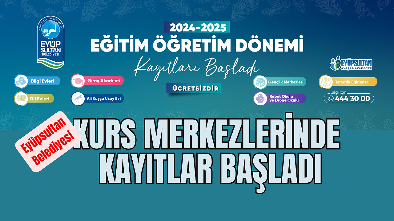 Eyüpsultan Belediyesi’nin kurs merkezlerinde 2024 – 2025 Eğitim Öğretim Dönemi kayıtları başladı.