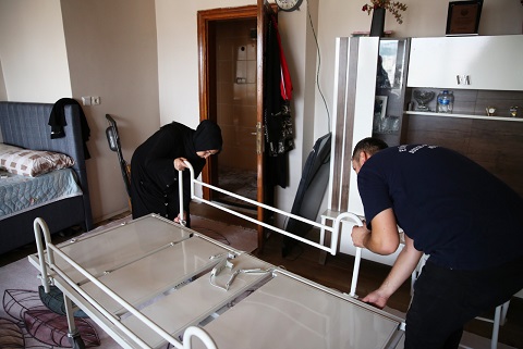 Bu kapsamda hasta ve hasta yakınlarının yükünü bir nebze de olsa hafifletmek amacıyla Engelli ve Yaşlı Hizmetleri birimi personeli hasta yataklarını evlere kadar götürerek kurulumunu yapıyor. Evde hasta yatağının montajını yapan personel sonrasında kumandalı yatakların kullanımını anlatarak vatandaşlara yardımcı oluyor.