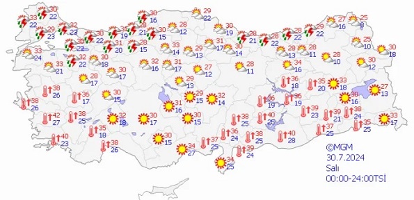 Pazartesi günü yine sıcak bir hava hakim olacak. Salı günü Marmara ve Trakya'da sağanak yağış bekleniyor. Çarşamba ve Perşembe günü de sıcak bir hava olması öngörülüyor.