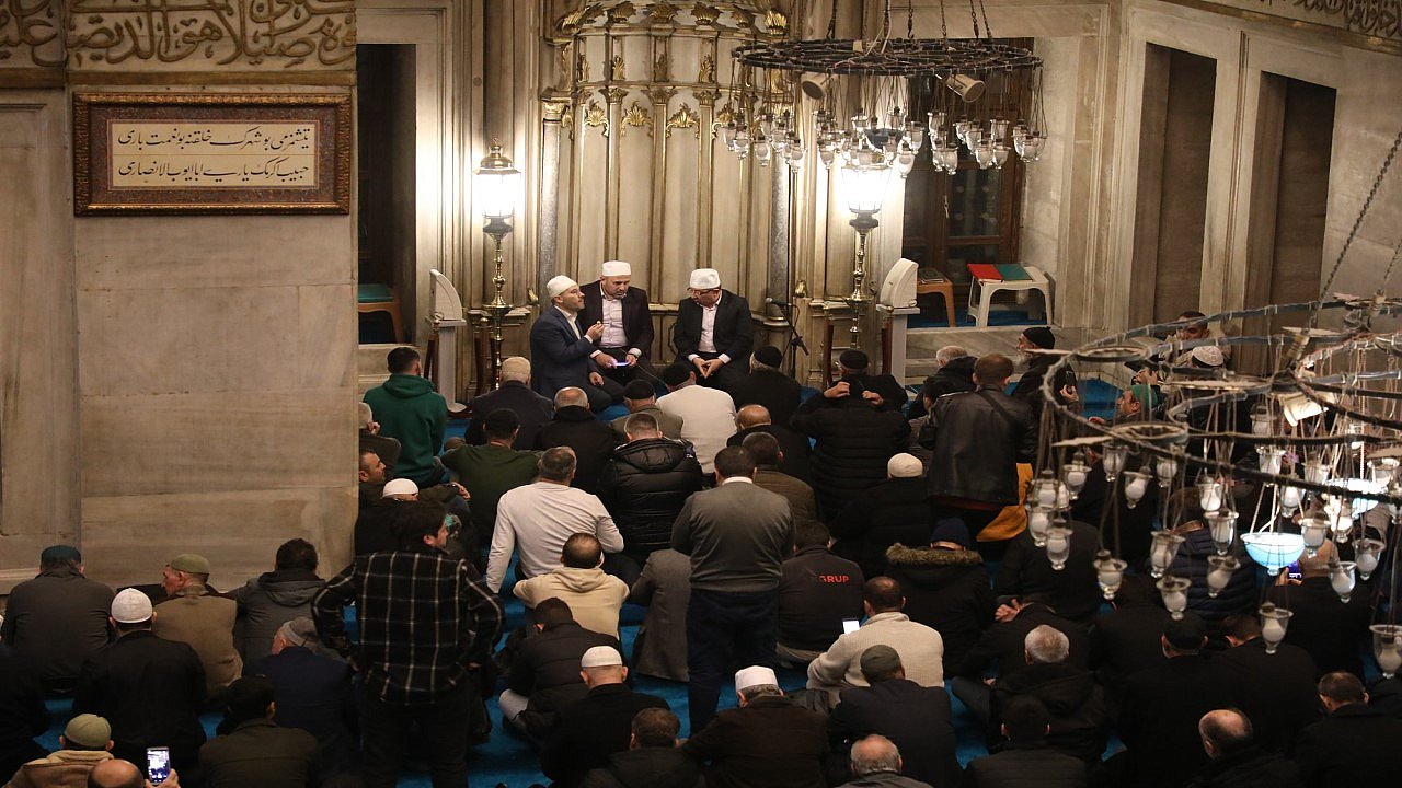 Akşam namazı sonrası Eyüp Sultan Camii’nde Hem Miraç Kandili hem de geçtiğimiz yıl meydana gelen Kahramanmaraş merkezli depremde hayatını kaybedenler için Mevlid okundu, dualar edildi.