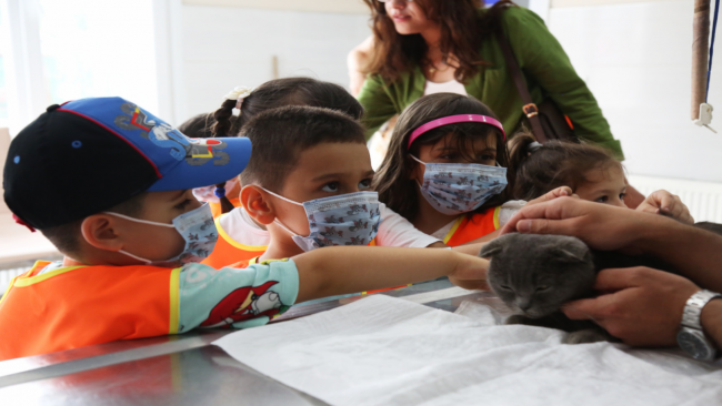 Çocuklar, veteriner hekimler eşliğinde kliniği gezerek tedavi altındaki hayvanları yakından tanıma fırsatı buldu. Veterinerler; hayvan sağlığı, bakımı ve sahiplendirme süreçleri hakkında öğrencilere bilgilendirme yaparken, minikler de hayvan sevgisi konusunda farkındalık kazandı.