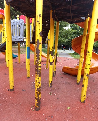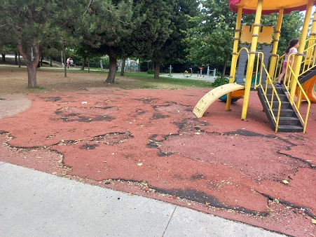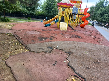 Hergün yüzlerce çocuğun oynamak için geldiği park alanında paslanmış oyun aletleri çocukların sağlığını tehlikeye atarken, oyun alanı zemini feci kazalara davetiye çıkarıyor.