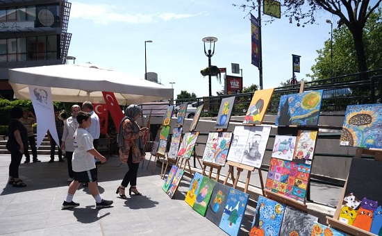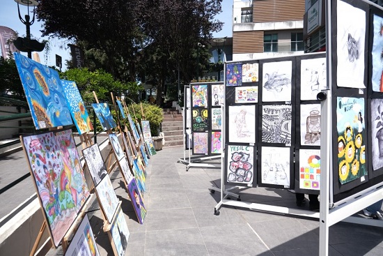 Kemerburgaz Şehit Sinan Şen Ortaokulu öğrencileri tarafından yapılan resimler sergide beğeniye sunuldu.