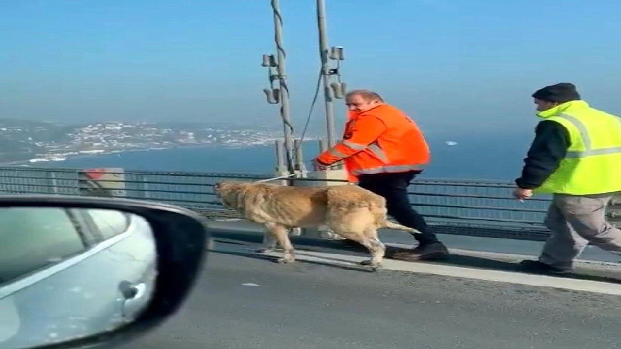 İstanbul'da yolunu şaşırarak 15 Temmuz Şehitler Köprüsü'ne giren sokak köpeği, güvenlik görevlileri tarafından köprü üzerinde yoldan alındı. Köpeği köprüde gören vatandaşlar şaşkınlıklarını gizleyemedi.