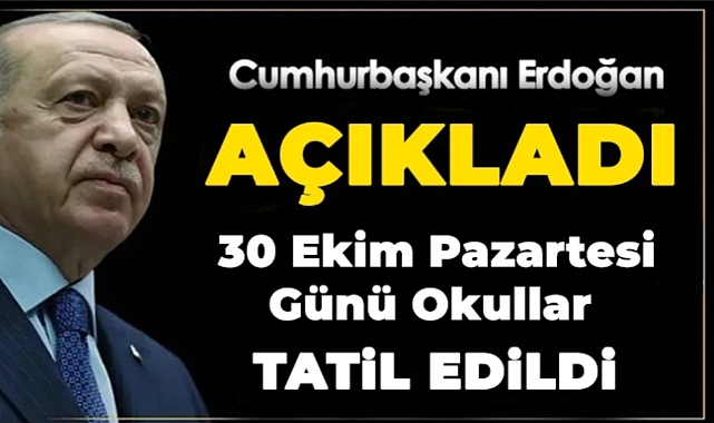 Sondakika haberi! Cumhurbaşkaı Recep Tayyip Erdoğan, sosyal medya hesabından 30 Ekim'de okulların tatil edildiğini duyurdu.
