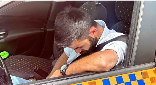 Bunun üzerine olay yerine polis ekibi sevk edildi. Bu esnada taksinin içerisinde uyumaya devam eden taksiciye bu kez muhabir müdahale etti. Muhabirin bir süre konuştuğu taksici ardından ayılıp araçtan indi. Taksinin etrafını kontrol eden taksici, ekiplerle konuştuktan sonra polisin geleceğini duyunca aracına binerek hızla uzaklaştı.