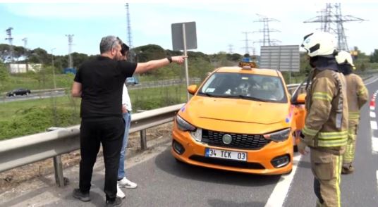 Kazalı araçla kilometrelerce yol giden taksici, trafikte seyrederken önce yalpaladı ardından da bariyerlere çarpmaktan son anda kurtuldu. Taksici dakikalar sonra kazalı araçla gözden kayboldu