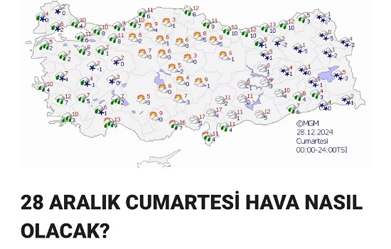 Meteoroloji Genel Müdürlüğü tarafından yapılan son tahminlere göre, ülke genelinin parçalı ve çok bulutlu, Marmara, Akdeniz, İç Anadolu, Batı ve Orta Karadeniz, Doğu Anadolu (Ardahan hariç), Güneydoğu Anadolu ile Afyonkarahisar, Uşak, Kütahya, Muğla, Giresun, Gümüşhane ve Bayburt çevrelerinin aralıklı yağışlı geçeceği tahmin ediliyor.