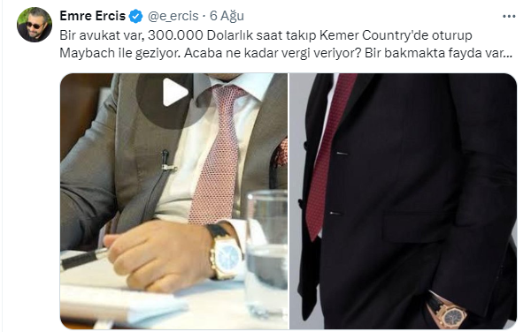 ‘Bir avukat var, 300.000 Dolarlık saat takıp Kemer Country'de oturup Maybach ile geziyor. Acaba ne kadar vergi veriyor? Bir bakmakta fayda var...’ ifadelerini kullandı.