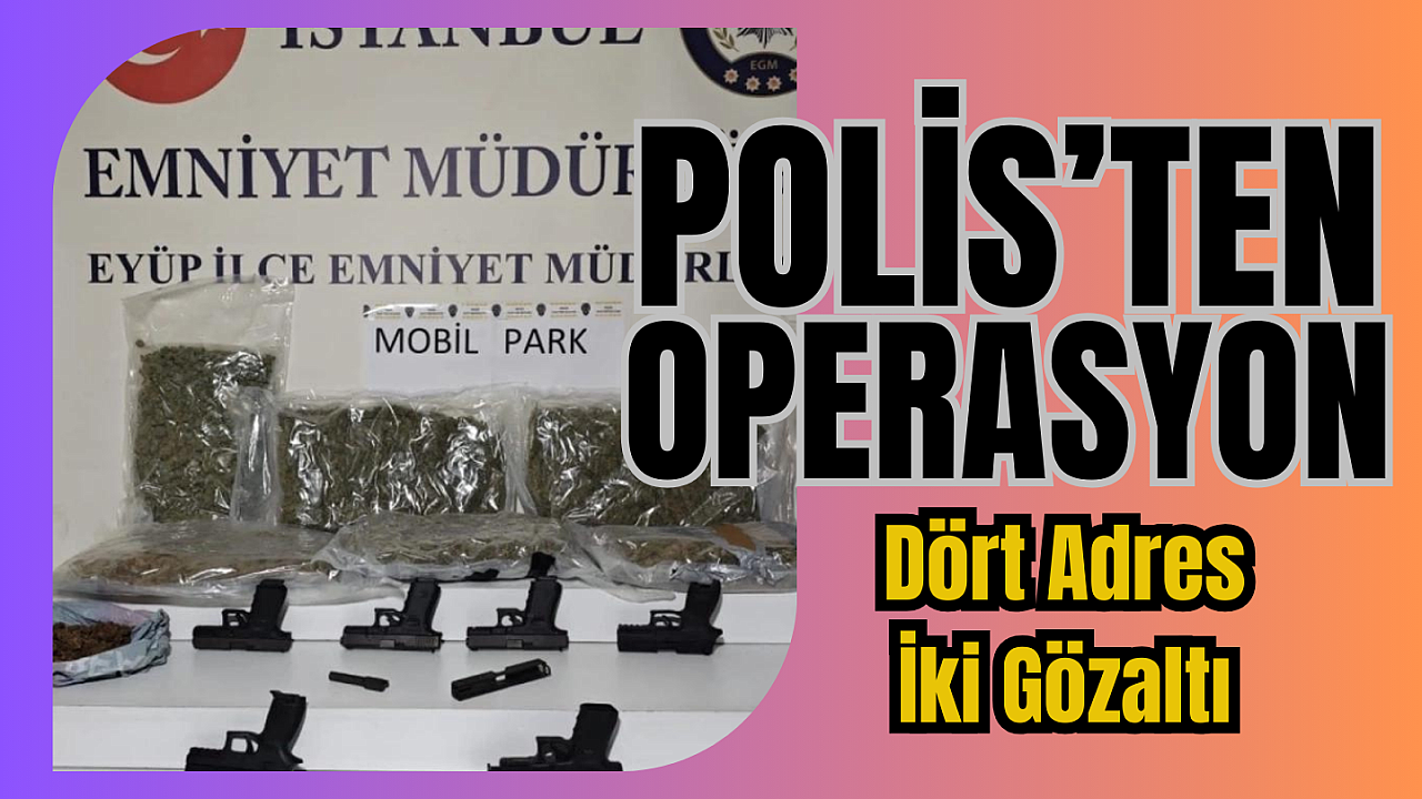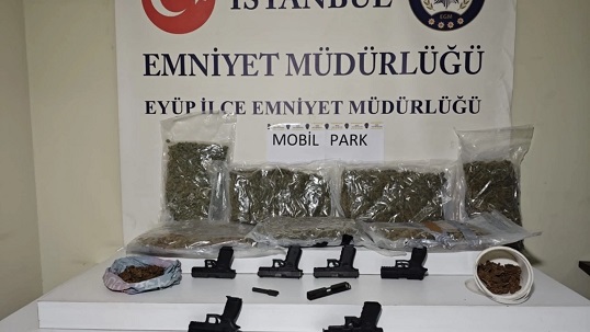 Eyüpsultan, Emniyet müdürlüğü ekipleri 2 şüphelinin silah ve uyuşturucu madde ticareti yaptığını belirlemesi üzerine Eyüpsultan ve Fatih ilçelerinde 4 ayrı adrese eşzamanlı operasyon düzenledi. Dron destekli operasyonda çok sayıda silah ve uyuşturucu madde ele geçirilirken 2 şüpheli de yakalandı.