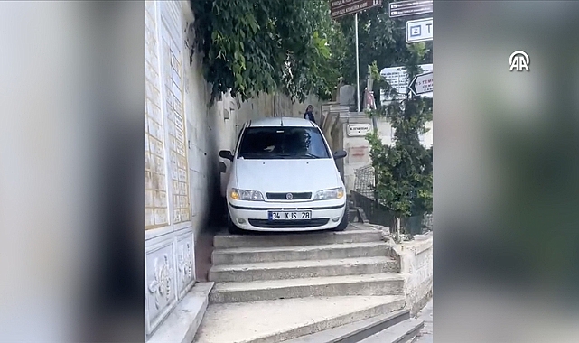 Eyüp Mezarlığı izleyenleri şaşırtacak bir olaya ev sahipliği yaptı. Mezarlıktan çıkmaya çalışan otomobilin sürücüsü, yolu karıştırınca yayaların kullandığı merdivenlerden aracıyla inmeye çalıştı. O anlar kayda alındı.