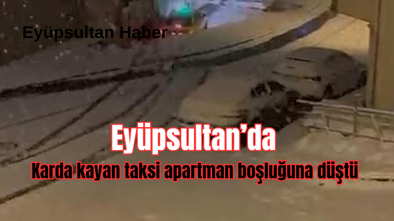 Eyüpsultan’da karda kayan taksi apartman boşluğuna düştü