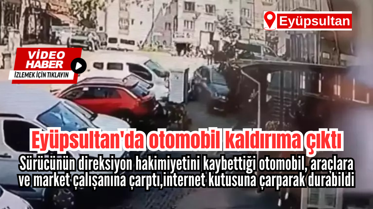 Eyüpsultan 'da sürücüsünün direksiyon hakimiyetini kaybettiği otomobil, kaldırıma çıkarak önce park halindeki araca ardından kaldırımda oturan market çalışanına ve internet kutusuna çarptı.