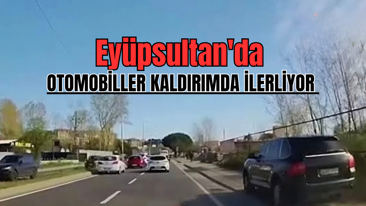 Eyüpsultan'da, trafik yoğunluğundan kurtulmak isteyen bazı sürücülerin otomobilleriyle kaldırıma çıkarak ilerlediği anlar, araç içi kamerasınca kaydedildi.