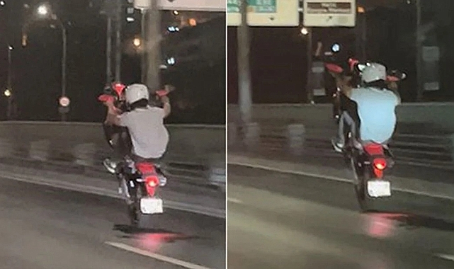 Haliç Köprüsü'nde uzun süre tek teker üzerinde giden motosiklet sürücüsünün tehlikeli yolculuğu cep telefonu kamerasıyla görüntülendi.
