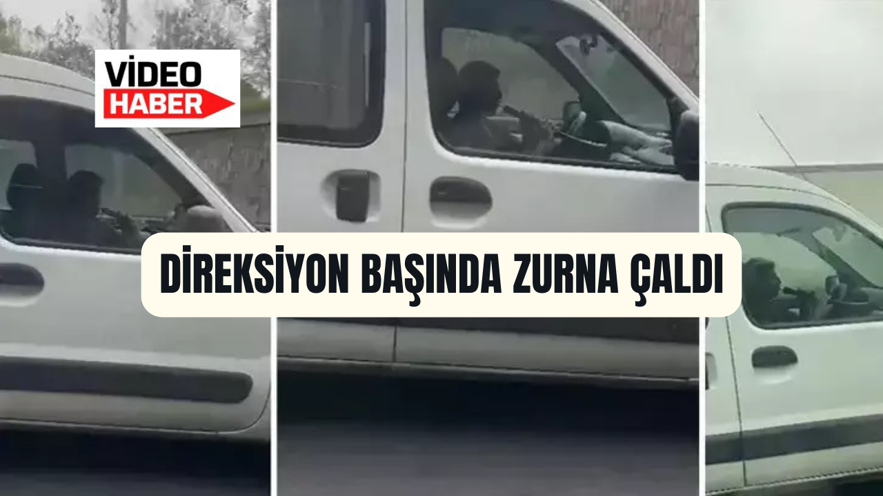Şahsın hem yola bakmaya çalışması hem de elindeki zurnayı kontrol ederek araç kullanmaya devam etmesi yanından geçen diğer sürücüleri de şaşırttı.