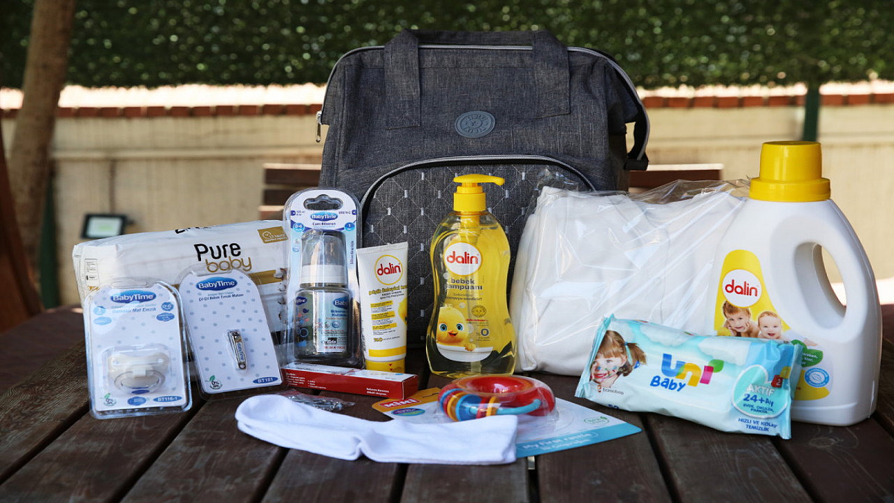 Doğum sonrası ihtiyaç duyulacak tüm temel malzemelerin yer aldığı Yeni Doğan Paketi’nde çanta, bebek bezi, şampuan, ateş ölçer, deterjan, biberon, oyuncak, anne/bebek çorabı, anne/bebek tırnak makası, ıslak havlu paketi, pişik kremi, hastane çıkış seti, zıbın takımı, patikli tulum, şapka, eldiven, önlük, battaniye bulunuyor.