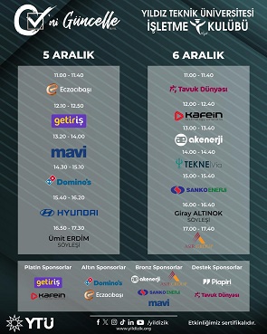 Dünyaca bilinen global markalar ve sektörde lider firmaların üst düzey yöneticileri tarafından gerçekleştirilecek sertifikalı oturumlar ile öğrencilerin kariyerine yön veren CV’ni Güncelle etkinliği, Ümit Erdim ve Giray Altınok ile gerçekleştireceğimiz keyifli söyleşileriyle de katılımcıların eğlenceli zaman geçirmesini sağlayacak!